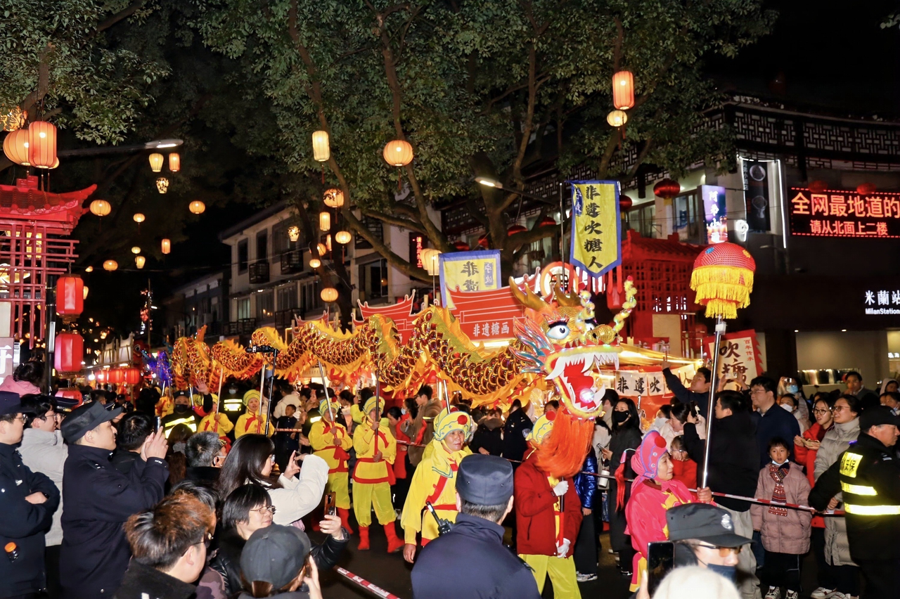 这是文商旅促融合的新年开场大戏。人们在逛庙会时,既欣赏到跨区域的非遗巡游、沉浸式演艺,还能漫步市集、品味美食,在古今交融的场景中,沉浸式体验这座千年古城的文化魅力与时代活力。